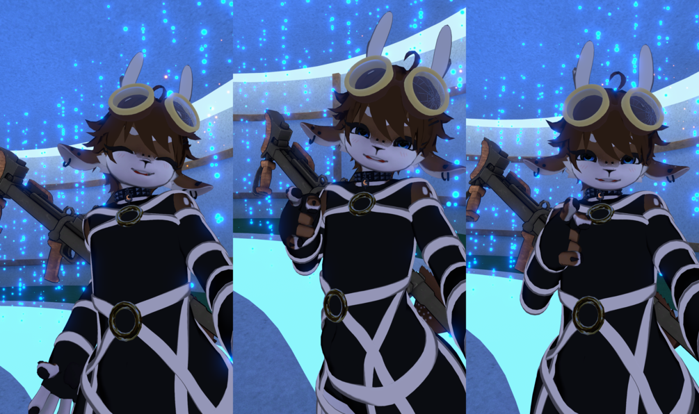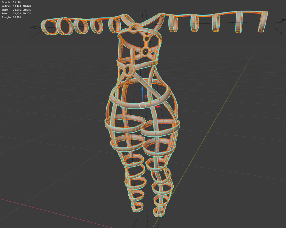 It has blendshapes for fitting over top of the existing clothing [suit, arm warmers, thigh highs, boots] as well as another blend to prevent clipping when worn with the baggy sweater.